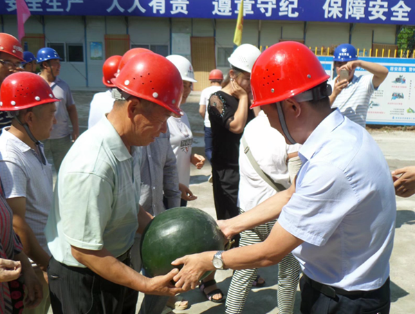 2017年7月13日上午,銅川市住建局副局長郭小放、銅川市新區(qū)管委會(huì)副主任張鐵成等相關(guān)人員來到陜西省華源建筑工程有限責(zé)任公司所屬海林御苑項(xiàng)目部,一同慰問在烈日下辛勤勞作的項(xiàng)目部全體員工,并親自為每位員工發(fā)放慰問品。隨后,在陜西省華源建筑工程有限責(zé)任公司總經(jīng)理郝曉兵、海林御苑項(xiàng)目經(jīng)理馮中樓等人員的陪同下,對(duì)海林御苑施工現(xiàn)場進(jìn)行了高溫作業(yè)環(huán)境檢查,要求一定要抓好夏季安全生產(chǎn)工作,杜絕一切安全隱患的發(fā)生,根據(jù)高溫季節(jié)特點(diǎn),合理安排工人作息時(shí)間,落實(shí)防暑降溫措施,盡量改善現(xiàn)場作業(yè)人員的工作和生活條件,一定要把安全放在首位。(楊楠)